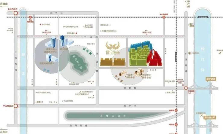 :中山站(中山唯一高铁站),仅距2.5KM;广州地铁18号线(规划中);深茂铁路;深圳地铁33号线.商业:成熟商业配套环绕,繁华生活触手可及