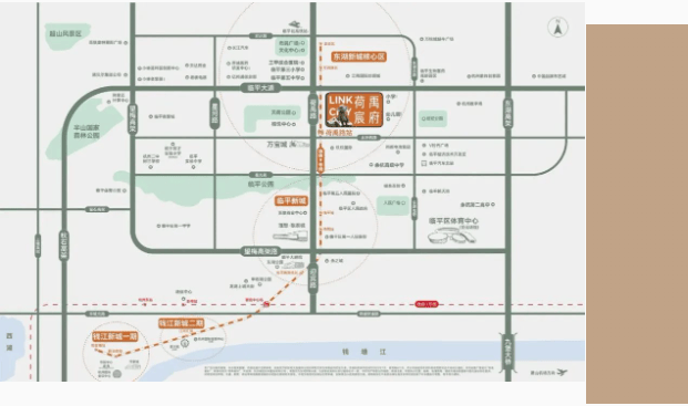 龙安湖体育公园(规划)、天荷公园、距公园绿地(项目东侧)临平公园约1.5公里。