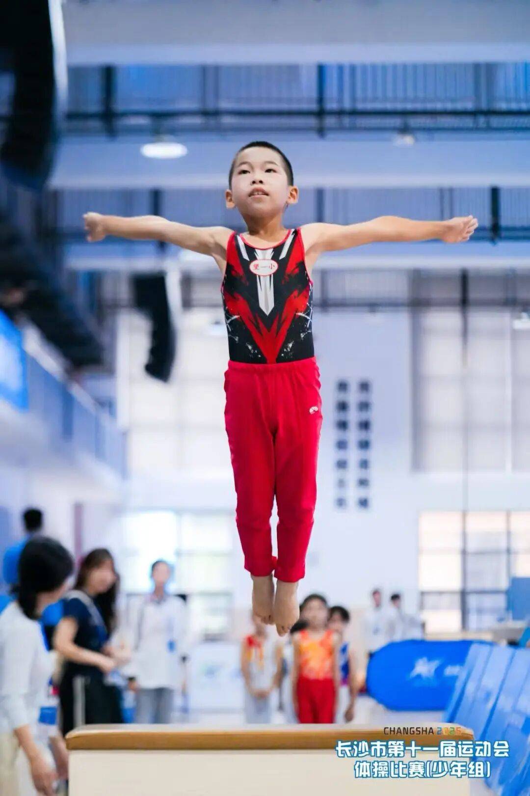 在长沙市第十一届运动会上,望月湖第一小学代表团凭借卓越的表现,在体操、蹦床、健美操等项目中大放异彩,一举斩获17枚金牌、16枚银牌和13枚铜牌。