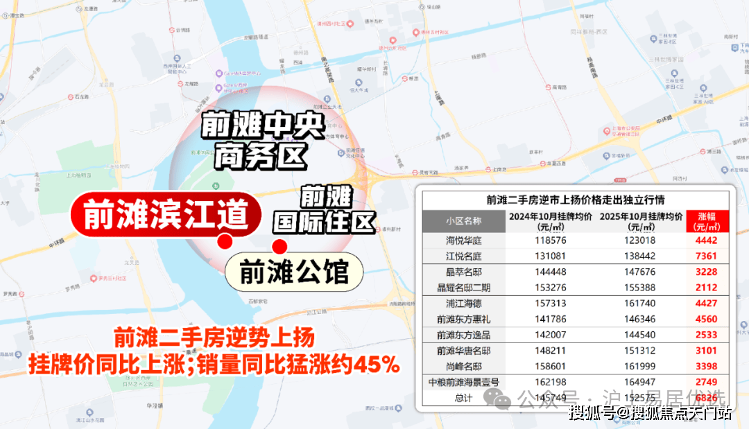 而前滩滨江超级完整体,在2025年上海楼市中交出了惊艳成绩单---当约98%的板块挂牌价同比下降时,前滩逆势“量价齐升”,走出独立行情。