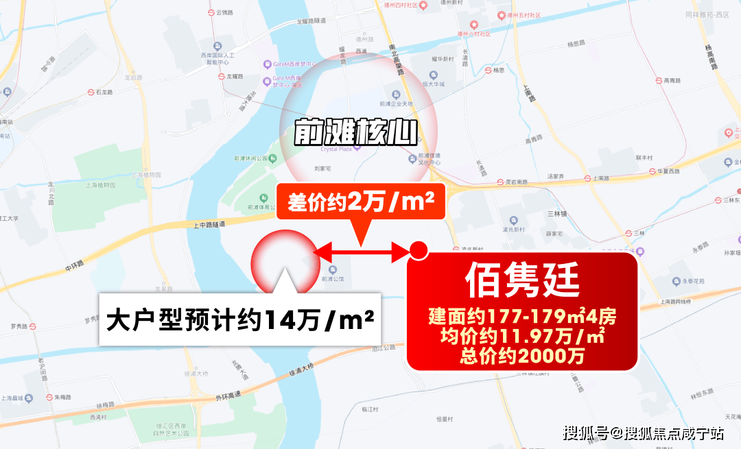 而佰隽廷直线公里,步行就能接入核心配套,同是4房户型,单价却比前滩核心大户型低约7万/㎡,算下来一套房总价能省1200万+,就能享受前滩TOP级配套。