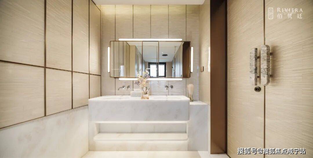 阳光满溢,尤其主卫罕见实现朝南采光,搭配奢华的双台盆、马桶间、浴缸与淋浴的“四件套”配置,尽显高端居住品质;