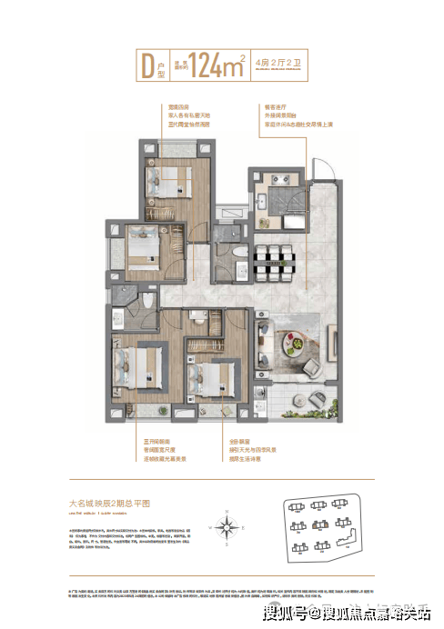 户型设计方面,项目主推建面约98-124㎡的三房和四房户型,均为精装修交付。户型设计合理,空间利用率高,三开间朝南,采光充足,得房率高达80%。特别是124㎡的四房户型,配备了270°L型飘窗,提供极佳的观景体验。
