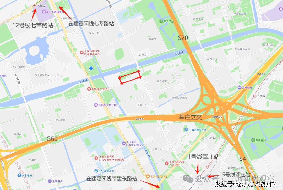 据悉,该地块历史上依次是农田、少量农宅、农业设施用地→报春菜场、小田园饭店、京代会所、闵行酒仓→聚鑫阁饭店、全季酒店等,西侧曾作为闵行区市容环卫所、区市容监察支队、区民防办公室等行政办公场所,且地块东北侧与淀浦河绿地之间的较大面积为地面停车场.