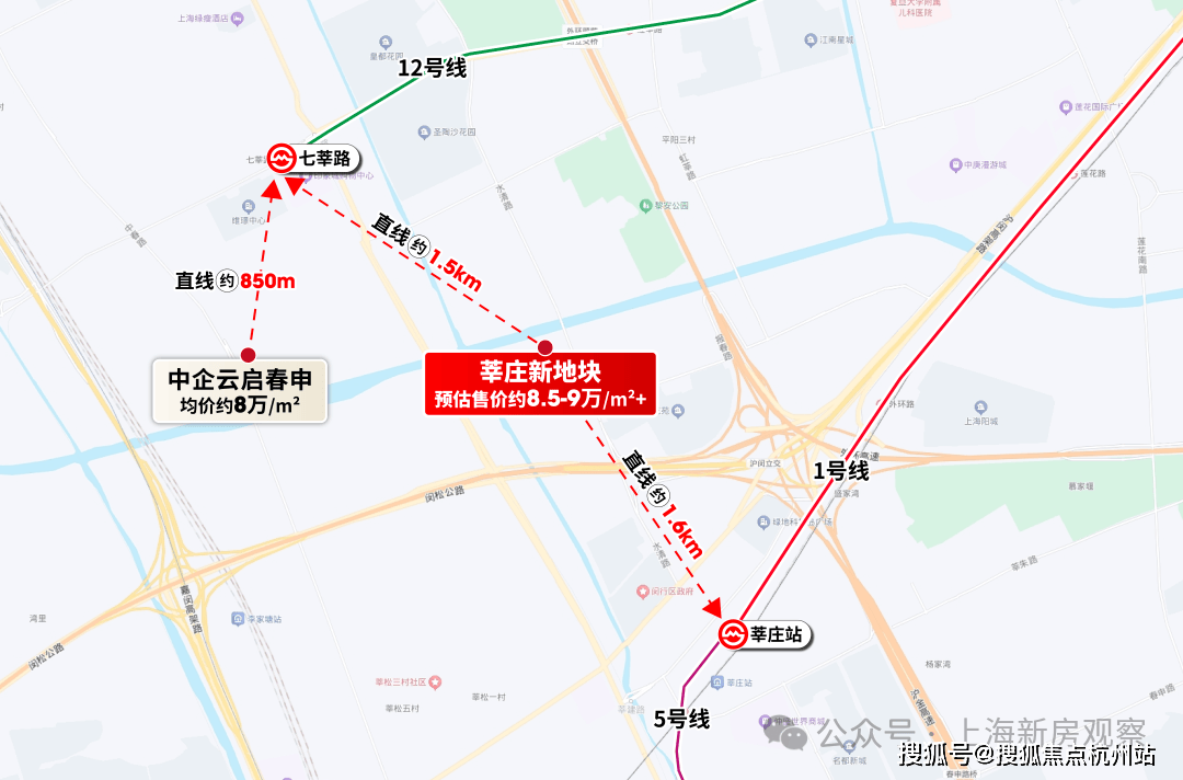 莘庄板块近两年只有保利建工海玥锦上、中企云启春申两个新盘,均在莘庄商务区,售价在8万左右.