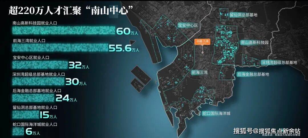 前海、后海、蛇口三湾中芯,串联深圳湾超总、科技园、留仙洞等7大总部基地,汇聚深圳50%的世界500强、40%的上市公司、20%的国家高企,未来将吸引260万人才聚集。
